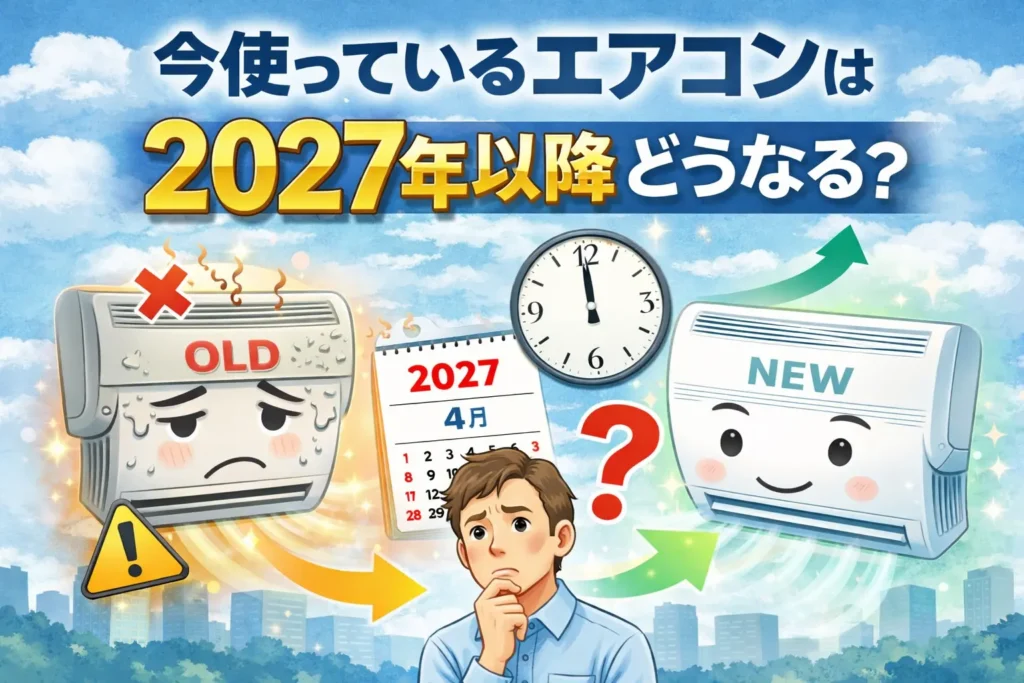 「エアコン2027年問題」と聞くと、今使っているエアコンが2027年を境に急に使えなくなるように感じるかもしれません。